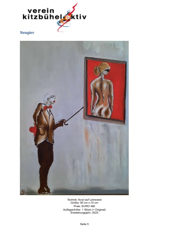 Seite 5NeugierTechnik: Acryl auf LeinwandGr%u00f6%u00dfe: 50 cm x 70 cmPreis: EURO 490Auflagenh%u00f6he: 1 St%u00fcck (= Original)Entstehungsjahr: 2023