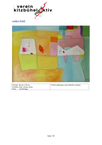 reifes Feld Format: 50 cm x 70 cm Frucht einbringen und zufrieden werden Technik: Holz, Leinen, Acryl Preis auf Anfrage Seite 105