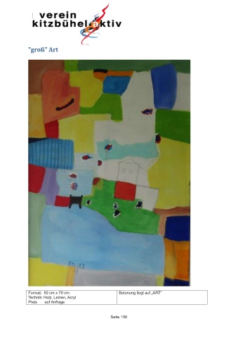 "groß" Art Format: 50 cm x 70 cm Betonung liegt auf „ART“ Technik: Holz, Leinen, Acryl Preis auf Anfrage Seite 108