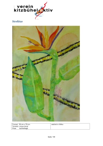 Strelitze Format: 50 cm x 70 cm wächst in Afrika Technik: Leinen Acryl Preis auf Anfrage Seite 109