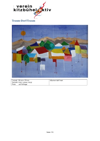 Traum-Dorf-Traum Format: 50 cm x 70 cm träumen darf man Technik: Holz, Leinen, Acryl Preis auf Anfrage Seite 116