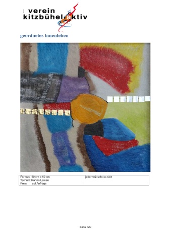 geordnetes Innenleben Format: 50 cm x 50 cm jeder wünscht es sich Technik: Karton Leinen Preis auf Anfrage Seite 120