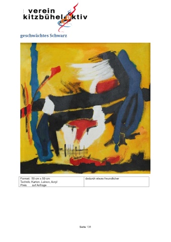geschwächtes Schwarz Format: 50 cm x 50 cm dadurch etwas freundlicher Technik: Karton, Leinen, Acryl Preis auf Anfrage Seite 131