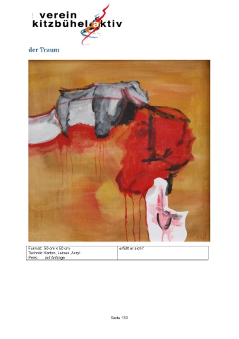 der Traum Format: 50 cm x 50 cm erfüllt er sich? Technik: Karton, Leinen, Acryl Preis auf Anfrage Seite 133