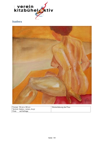 Isadora Format: 50 cm x 50 cm Wertschätzung der Frau Technik: Karton, Leinen, Acryl Preis auf Anfrage Seite 134