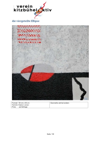 die viergeteilte Ellipse Format: 50 cm x 50 cm Geometrie einmal anders Technik: Karton Leinen Preis auf Anfrage Seite 139