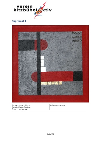 Supremat 1 Format: 50 cm x 50 cm in Russland erdacht Technik: Karton Raufaser Preis auf Anfrage Seite 142