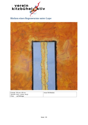 Rücken eines Regenwurms unter Lupe Format: 50 cm x 50 cm neue Sichtweise Technik: Holz, Leinen, Acryl Preis auf Anfrage Seite 146