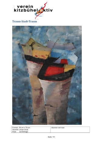 Traum-Stadt-Traum Format: 50 cm x 70 cm träumen soll man Technik: Leinen Acryl Preis auf Anfrage Seite 151