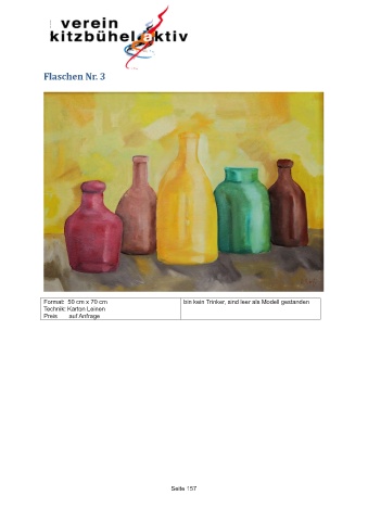 Flaschen Nr. 3 Format: 50 cm x 70 cm bin kein Trinker, sind leer als Modell gestanden Technik: Karton Leinen Preis auf Anfrage Seite 157