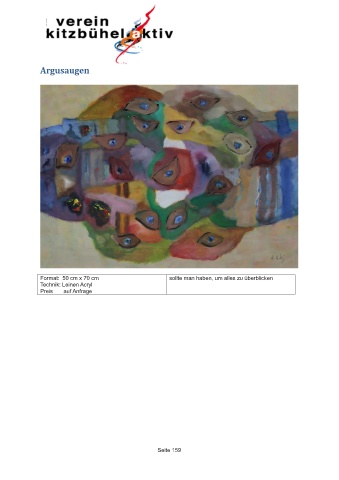 Argusaugen Format: 50 cm x 70 cm sollte man haben, um alles zu überblicken Technik: Leinen Acryl Preis auf Anfrage Seite 159