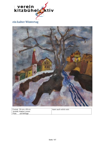 ein kalter Wintertag Format: 50 cm x 50 cm kann auch schön sein Technik: Karton Leinen Preis auf Anfrage Seite 167