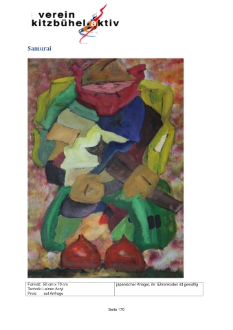 Samurai Format: 50 cm x 70 cm japanischer Krieger, ihr Ehrenkodex ist gewaltig Technik: Leinen Acryl Preis auf Anfrage Seite 170