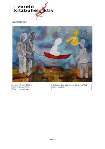 Seelenboot Format: 70 cm x 100 cm Gedanken über Übergang in die andere Welt, Technik: Leinen Acryl keiner kennt sie Preis auf Anfrage Seite 172