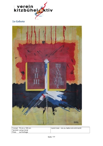 1o Gebote Format: 70 cm x 100 cm kennt man – sie zu halten ist nicht leicht Technik: Leinen Acryl Preis auf Anfrage Seite 177