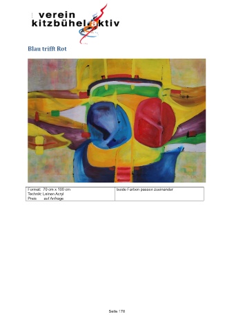 Blau trifft Rot Format: 70 cm x 100 cm beide Farben passen zueinander Technik: Leinen Acryl Preis auf Anfrage Seite 178