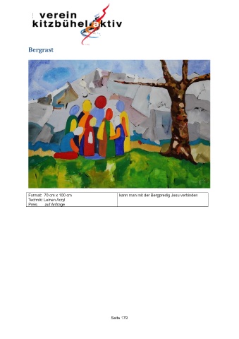 Bergrast Format: 70 cm x 100 cm kann man mit der Bergpredig Jesu verbinden Technik: Leinen Acryl Preis auf Anfrage Seite 179