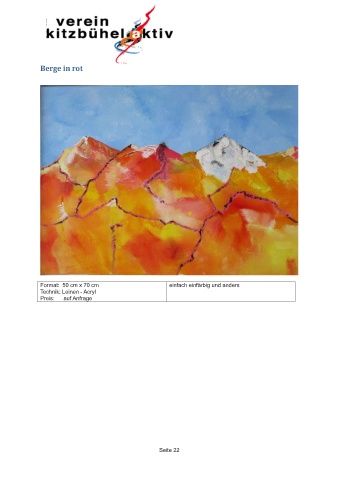 Berge in rot Format: 50 cm x 70 cm einfach einfärbig und anders Technik: Leinen - Acryl Preis: auf Anfrage Seite 22