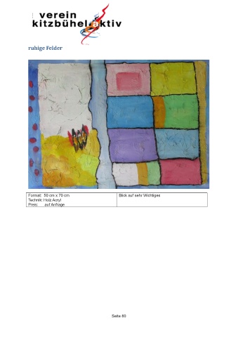 ruhige Felder Format: 50 cm x 70 cm Blick auf sehr Wichtiges Technik: Holz Acryl Preis: auf Anfrage Seite 80