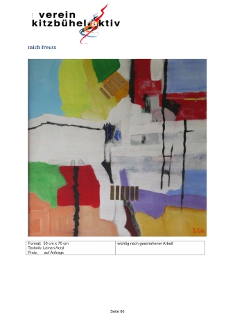 mich freuts Format: 50 cm x 70 cm wichtig nach geschehener Arbeit Technik: Leinen Acryl Preis: auf Anfrage Seite 86