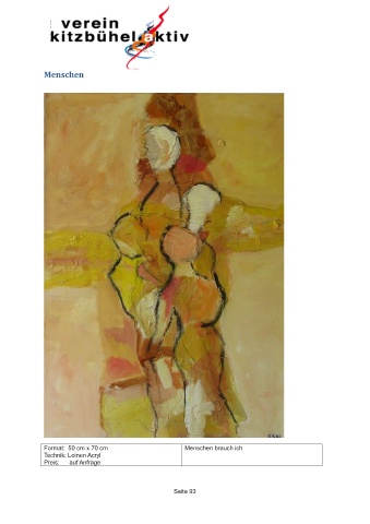 Menschen Format: 50 cm x 70 cm Menschen brauch ich Technik: Leinen Acryl Preis: auf Anfrage Seite 93
