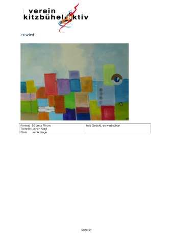 es wird Format: 50 cm x 70 cm hab Geduld, es wird schon Technik: Leinen Acryl Preis: auf Anfrage Seite 94