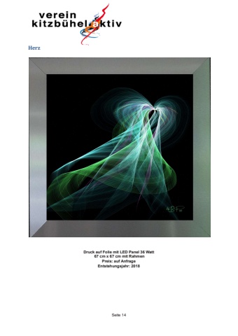 Seite 14 Herz Druck auf Folie mit LED Panel 36 Watt 67 cm x 67 cm mit Rahmen Preis: auf Anfrage Entstehungsjahr: 2018