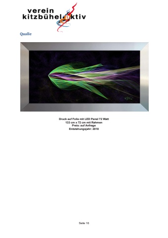 Seite 16 Qualle Druck auf Folie mit LED Panel 72 Watt 133 cm x 72 cm mit Rahmen Preis: auf Anfrage Entstehungsjahr: 2018