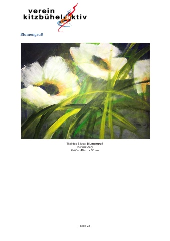 Blumengruß Titel des Bildes: Blumengruß Technik: Acryl Größe: 40 cm x 30 cm Seite 23