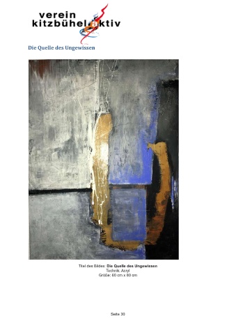 Die Quelle des Ungewissen Titel des Bildes: Die Quelle des Ungewissen Technik: Acryl Größe: 60 cm x 80 cm Seite 30